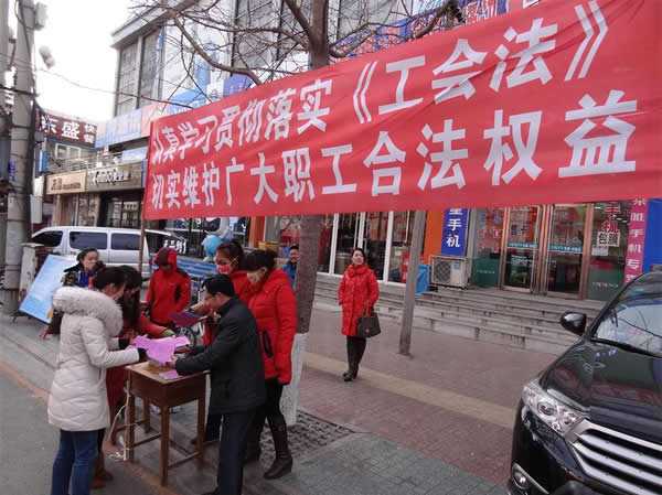 今年12月4日是我国首个"国家宪法日"。为深入学习贯彻党的十八届四中全会精神,提升法制意识和法制观念,更好的推进依法治会进程,北镇市总工会组织机关干部走上街头,开展了《工会法》、《工会章程》、《劳动法》等法律法规的宣传咨询活动。活动现场,工作人员共发放宣传单、维权手册1000多份,接待咨询30余人次,耐心细致解答有关劳动权益保障、劳动法等方面的法律问题。现场市民纷纷积极响应,表示要认真学习相关法律法规,维护好自身的合法权益。(赵义奎 马重阳)