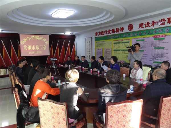 2014年12月31日,北镇市总工会会议室,喜气洋洋,人人笑意盈盈。20多名来自各条战线的近三年省市县三级劳模代表欢聚一堂,喜笑颜开,共同迎接2015新年的到来。市委副书记、总工会主席赵春刚、市政府常务副市长张大军、市总工会班子成员与劳模代表一起座谈。