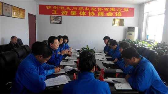 锦州恒亚内燃机配件有限公司是北镇市招商引资企业,是由丹东市北环锻造有限公司与加拿大东豪投资有限公司共同投资组建的股份制有限公司,属汽车发动机配件行业,是生产柴油机曲轴的专业化生产企业,现有员工208人。公司于2007年3月注册成立,2010年8月,企业整体搬迁到辽宁省沟帮子开发区铁南工业园区。公司成立以来,经历过辉煌,也遇到了低谷。特别是2014年开始,受国际国内经济发展放缓,经济环境下行压力的影响,企业效益严重下滑。这种情况,使得企业集体协商面临重重困难。经过反复协调、沟通,力排众难,工资集体协商如期举行。经过会前广泛征求职工意见,企业、职工双方多次磋商和会上深入协商,最终就工作增幅、绩效工资计算、工龄工资标准、餐费补助标准、加班加点工资发放、最低工资基数等12项内容达成一致意见,双方首席代表共同签署了合同草案。