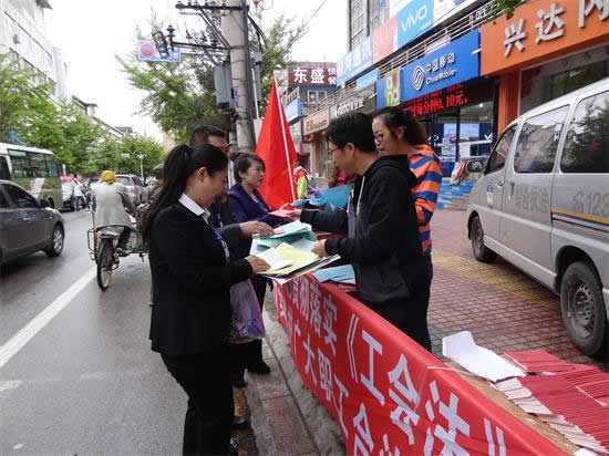 5月12日上午,市总工会结合北镇市法制宣传日活动,机关干部走上市区繁华路段开展了新一轮普法宣传。天气虽然阴冷,但大家的宣传热情空前高涨,发放宣传单,解答职工咨询,讲解法律知识忙个不停。整个宣传时段,来来往往的人群络绎不绝,工作人员一直处在紧张的忙碌中。