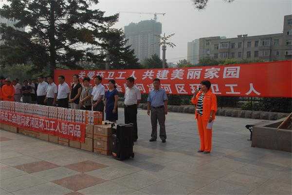 8月18日上午,市委常委、市总工会主席赵璟率领市总工会领导班子成员一行,在凌河区委、区政府、区总工会主要领导陪同下,冒着酷暑看望慰问了凌河区一线环卫工人,并送来了千余件慰问品。为坚持在高温工作的环卫工人送去工会组织的关怀。