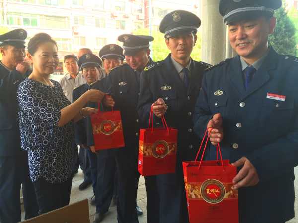 凌河区总工会陈海包对工人们说,在中秋节到来之际,祝你们节日快乐、身体健康、工作顺利!一线工人们也表示,在今后工作中更加努力,为振兴凌河经济贡献自己的力量,不辜负工会组织的关怀。(凌河区总工会 陈海包 邢莫非)