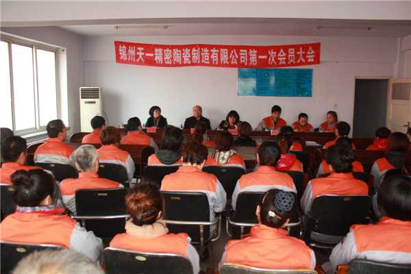 为深入贯彻落实省总“3+X”基层工会活力建设项目及市总“和谐职工之家”创建活动,更好的团结和动员广大职工发扬主人翁精神,为公司的快速发展积极贡献力量,11月13日下午,辽宁锦州天一精密陶瓷制造有限公司召开了第一次会员大会,共有45名会员参加了此次大会。市总工会组织部部长宋焱、市总工会民管部部长周晨、太和区总工会副主席洪军应邀出席会议并在主席台就坐。