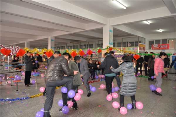 在校食堂一楼及门前举办趣味游艺活动。包括团队项目踩气球比赛、打口袋穿越烽火线,跳大绳比赛,同时为50岁以上的教师设立了双人合作项目手抓球接球赛,还为大家准备有奖猜谜和几种棋牌活动。学校工会在比赛场地布置了气球、拉花、灯笼等装饰,气氛喜庆而轻松。全体教职工积极参与,会场欢声笑语,团结而热烈,特别是团队项目增强了合作意识和学校的凝聚力,让大家在紧张的工作之余得到放松和愉悦。