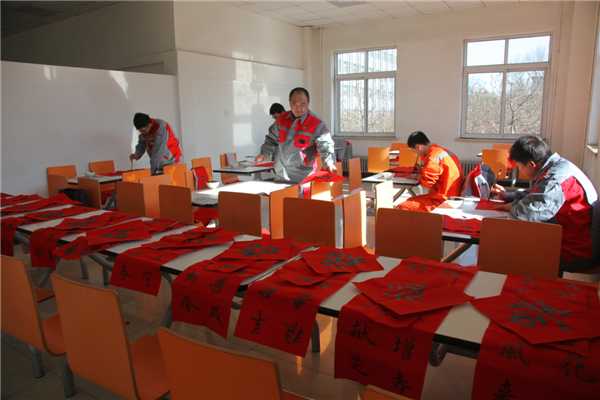 2月2日中午,中信锦州金属、锦州钛业两公司工会组织书法爱好者在员工食堂现场书写春联,提前为员工送去春节的祝福。