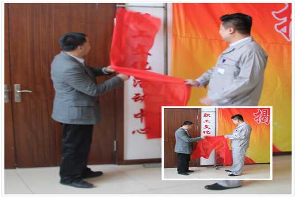 今天上午10点07分,在办公楼一楼大厅隆重举行了职工文化活动中心揭牌仪式。滨海新区总工会熊主席、沈主席,集团总经理出席了此次仪式,部分机关人员、车间员工70余人也来到揭牌仪式现场,仪式由党群工作部陆部长主持。
