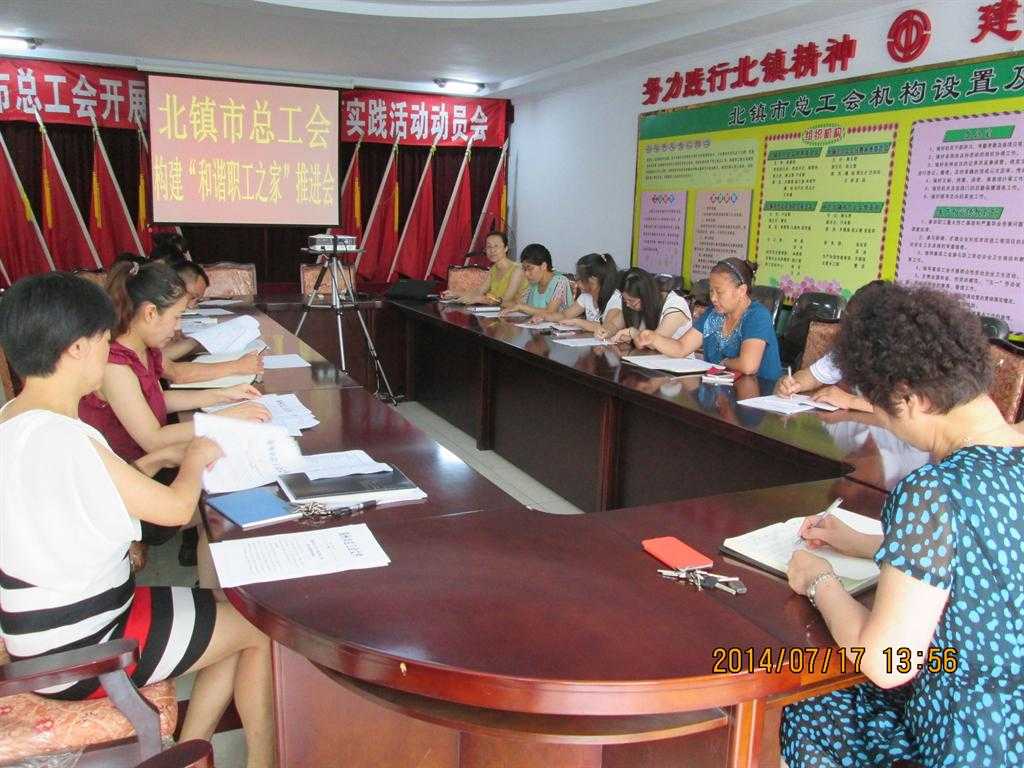 7月17日下午,北镇市总工会召开构建“和谐职工之家”推进会,部署落实锦州市总工会“和谐职工之家”建设工作,百人以上企业工会主席及总工会全体机关干部参加了会议。