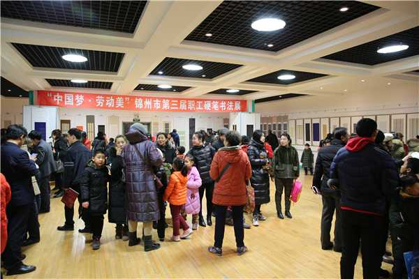 为喜迎新中国成立70周年,歌颂改革开放40周年取得的伟大成就,“中国梦 劳动美”锦州市第三届职工硬笔书法展于1月25日上午在工人文化宫三楼展厅开幕。市总工会主席孙志海、常务副主席吴玉林,市社会科学届联合会主席张宇翔、副主席杨俊波,著名书法家魏金国先生,市硬笔书法协会主席张俊、常务副主席兼秘书长刘宝新,市工人文化宫主任张凯,市职工书画协会副会长郑力出席活动。