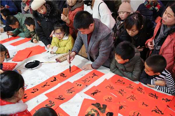 开幕式后,职工书法家、书法爱好者以及广大职工朋友共同观看了书法展?;疃殖。肮な榛岬闹肮な榉一雍疗媚?为观展的职工朋友免费写春联、送祝福,送上了一副副吉祥喜庆、墨宝飘香的春联。据了解,这次书法展历时一个月,将于2月25号结束。