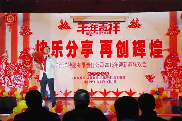 万马奔腾辞旧岁,三羊开泰迎新春。2015年新春佳节即将来临之际,2月11日小年这一天,黑山县辽宁西洋特肥有限责任公司党委、工会、行政联合举办了“建设和谐职工之家”“快乐分享、再创辉煌”大型春节联欢会。