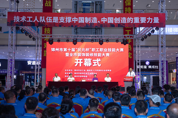 市总工会一级调研员刘文全、市人力资源和社会保障局副局长崔欣、锦州市装饰协会会长邵光、锦州市装饰行业工会联合会主席周浩出席开幕式。市总工会一级调研员刘文全在开幕致辞中指出,装饰装修从业人员是新时代产业工人的重要组成部分,在我市经济社会发展中发挥了重要作用。举办本次技能大赛是全市装饰装修行业的一次技术大比武、业务大培训、行业大练兵,必将为规范装饰装修行业秩序、促进行业标准制定、提升行业服务质量起到强有力的推动作用。希望装饰装修行业继续以加快装饰装修行业技能人才集聚为目标,培养和选拔一批技艺精湛的工匠型人才,进一步在全行业营造学赶先进、见贤思齐、崇尚技能、尊重人才的良好氛围,努力打造装饰行业的“锦州质量”和“锦州品牌”,为我市经济社会高质量发展贡献新时代产业工人力量。