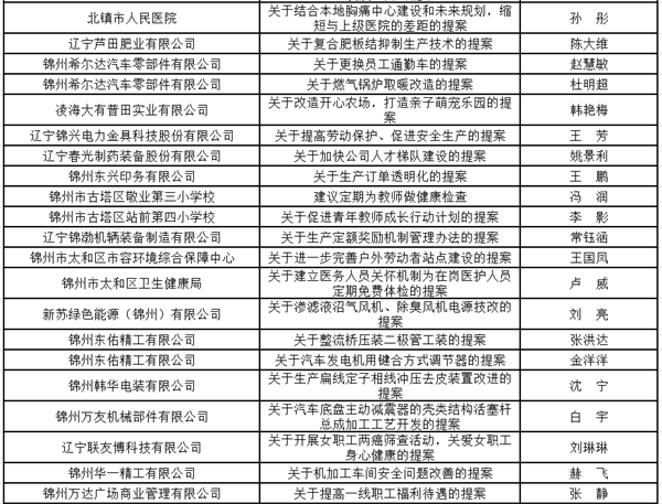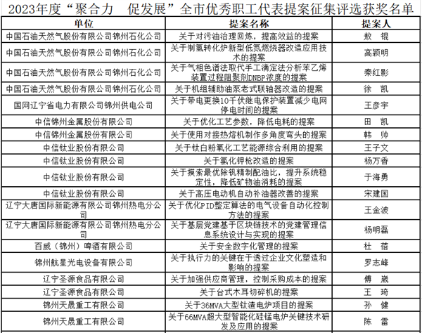 今年是锦州市总连续第八年开展职工代表提案(合理化建议)征集评选活动,从2016年参加全省 “百佳合理化建议”、“十大合理化建议”征集评选活动至今,锦州市总一直将职工代表提案工作作为提升职工代表履职能力、提高企事业单位民主管理工作水平的有力抓手,平均每年收到各基层工会推荐的职工代表提案百余份,有效地提高了企事业单位职代会的质量水平,充分调动了职工代表参与企业管理、建言献策共谋发展的积极性、主动性和创造性,形成了企业依靠职工、职工心系企业、职企共谋发展的良好局面。