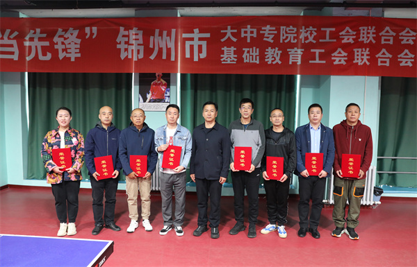 10月17、18日,由锦州市教科文卫金融服务工会联合大中专院校工会联合会、基础教育工会联合会举办的“助力振兴新突破 踔厉奋发当先锋”锦州市教职工乒乓球比赛顺利开展。比赛共有27家单位的119名教职工参加。锦州市总工会一级调研员刘文全出席颁奖仪式并为获奖单位颁奖。