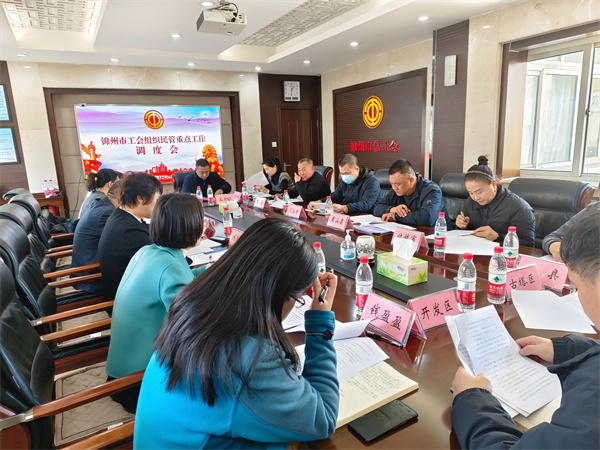 12月6日,锦州市工会组织民管重点工作调度会在市总工会三楼会议室召开。锦州市总工会党组书记、分管日常工作副主席刘春荣出席会议并讲话,市总工会党组成员、副主席孟军主持会议,市总组织民主管理部、办公室、财务部、经审办负责人、各县(市、区)总工会分管副主席及组织民管部门负责人参加会议。