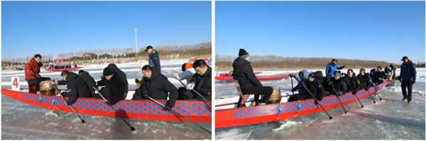 “各队注意!预备!划!”随着教练员一声令下,鼓点敲响,号子喊起,全副冬装的划手们有节奏地挥动冰钎,一艘艘龙舟你追我赶,在冰面上竞相滑行远去……这是1月9日职工冰上龙舟训练现场的一幕,参训职工在冰面上奋力拼搏,展现了冰上龙舟赛别样的速度与激情,也展示了我市职工在锦州高质量发展中拼搏进取的主力军风采。参与本次职工冰上龙舟赛的20支代表队来自各县(市)区总工会及企业一线,共300余人。