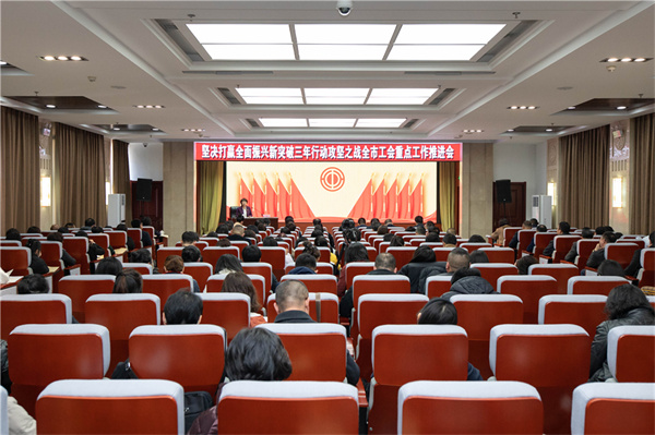 3月7日,锦州市总工会召开坚决打赢全面振兴新突破三年行动攻坚之战全市工会重点工作推进会,围绕全市攻坚之年重点任务、双高任务谋划部署2024年全会重点工作和重点任务?;嵋榫妥龊媚甓戎肮に刂侍嵘?、创新创造、典型选树、工会基层基础夯实、工会标准化维权体系建设等系列工作进行了讲解和部署。来自各县(市、区)总工会、市直机关工会、市教科文卫金融服务工会、重点企业工会的工会干部150余人参加。