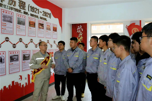 宣讲过程中,杨明磊同志以“在工匠路上的苦与乐”为题,深情地表达了他对工作的热爱和对提升技能水平的执着追求。“赛场上的表现,是平时千百次的失败和不放弃的结果?!毖蠲骼诮彩隽俗约喝绾卧谥刂靥粽街胁欢贤黄啤⒕媲缶?,最终成为“锦州工匠”“青年创新先锋”。凭着钻研精神,他还研究出“空预器自动冲洗装置”“风机叶片校对仪”,在无人值守、自主检修等多项技术上实现了国产化的自主可控,打破了国外供应商的相关技术封锁。他结合自己的工作经历,深刻诠释了新时代勤学苦练、深入钻研、勇于创新、敢为人先的工匠本色,正是这份热爱和执着,让他在工作岗位上坚守多年,用智慧和汗水书写着新时期技能工人的风采?!扒胛誓侨绾巫龅娇缱ㄒ党沙こ刹诺??”“怎样才能像您这样从‘敬业’做到‘专精尖’?”“作为一名新时代学生如何处理好课堂学习和课外学习的关系?”进入互动交流环节,同学们纷纷提问,与杨明磊互动交流,汲取榜样的力量,激起奋斗的热情。宣讲会后,杨明磊同志还和师生共同参观了学校党史学习教育基地和任传威劳模创新工作室,并同相关专业师生进行交流。