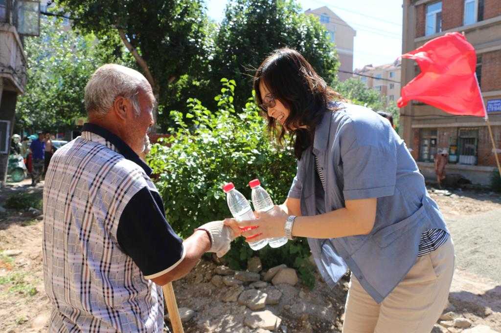 赵璟一行分别来到古塔区南街街道和凌河区榴花街道拆违重建施工现场,为一线建设者送去矿泉水、茶叶等消暑饮品。全市拆除违章专项行动以来,市总工会、团市委和市妇联积极响应市委、市政府的号召,重视和支持综合整治行动,第一时间向全市广大职工、青年和妇女发出倡议。同时,他们三家共同筹资50多万元,在古塔区南街街道、凌河区榴花街道分别建设职工幸福大院和职工幸福广场。两处工程硬化的面积约5000平方米,美化绿化的面积达1000平方米,还配套了各种健身器材。赵璟希望通过工青妇三家和建设者共同的努力,早日建成这两个带有示范性的工程,也希望社区居民积极参与市容综合治理活动,共同维护好环境。