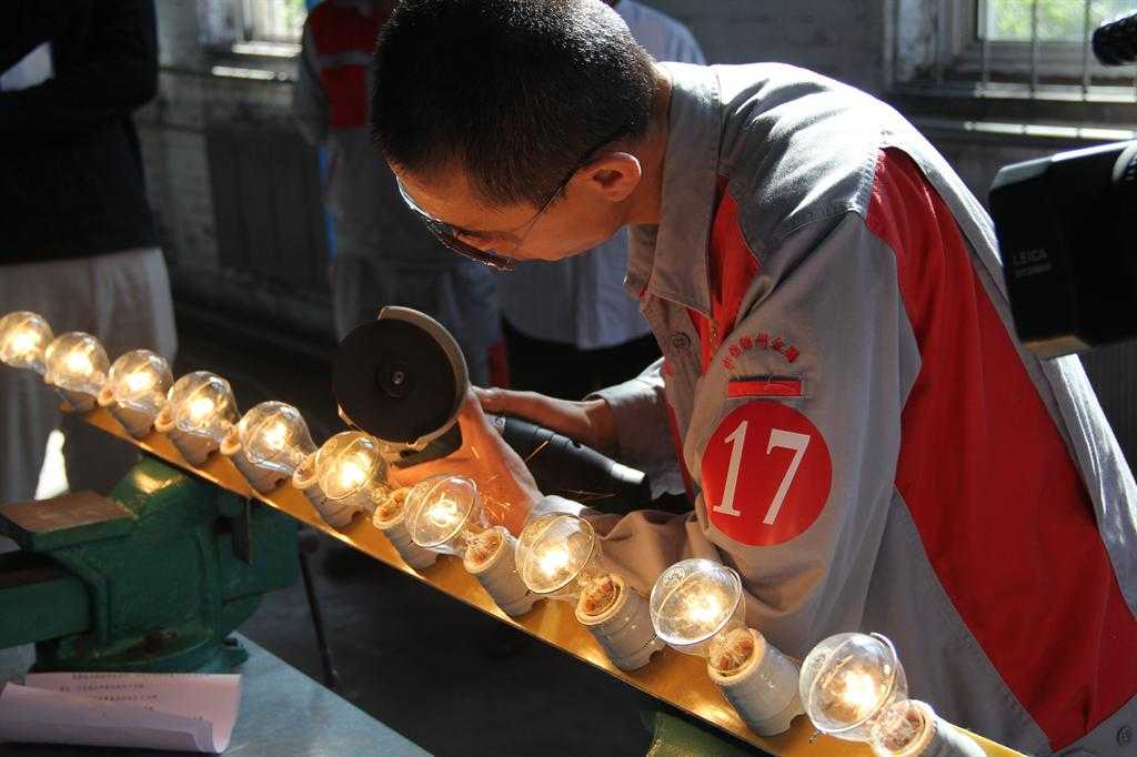 这些选手是经历理论考试、实际操作过关斩将脱颖而出的“制作行家”,在赛场上,他们又操起钻头、角磨、平锉和扁铲,进行钻鸡蛋壳、灯泡磨铁丝、目测配钥匙、錾圆钢“四关”的极限挑战。参加竞赛的50岁的周师傅说:“理论考试我下了功夫,实际操作比赛我是有备而来,这些绝活我心里真没底。”表示决不服输,要和年轻人比高低。