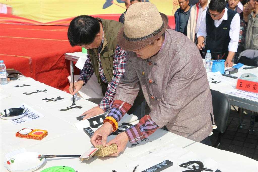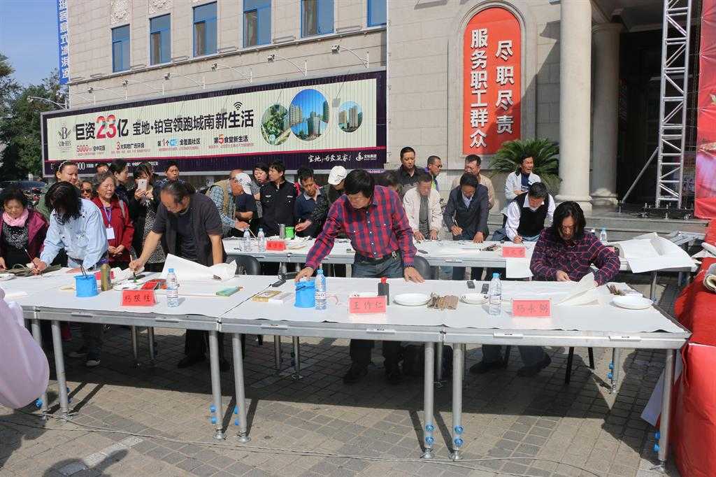 28日上午,市工人文化宫广场翰墨飘香,“迎国庆书画中国梦大型笔会活动” 正在这里举行。来自我市文化届的16位书画精英挥毫泼墨、描绘丹青,并将现场创作的书画作品无私地赠送给我市各条战线的劳动模范。