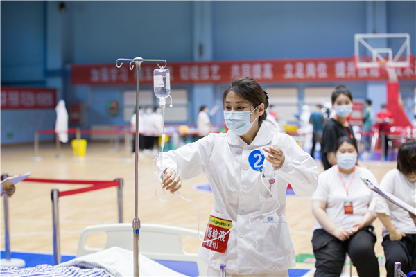 大赛以“战疫情,练技能,保健康”为主题,共有18个代表队,142名选手报名参赛。本次竞赛设精英组,省市、县区提高组和省市、县区团体组五个项目。比赛内容为单人项目鼻咽拭子采集、单人徒手心肺复苏、留置针输液及团队项目突发公共事件应急处理等。