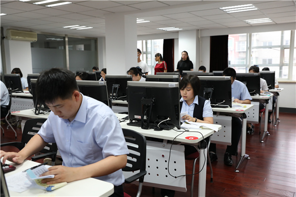 比赛当天,由评委现场在题库中随机抽取试题,决定场上选手考题,组委会从建立的专家评委库里,随机聘请了锦州市专业的评委团队,全程为大赛和选手服务。并特邀了辽宁金融职业学院专家作为本次大赛的裁判长,负责比赛过程的监督和对比赛成绩的认定。参赛选手个个积极应战,敢打敢拼,比赛现场气氛严肃、紧张、激烈。锦州银行、锦州市现代服务学校作为本次大赛的实操竞技场地,对参赛现场进行了全程直播,实现了现场教学,现场监督。