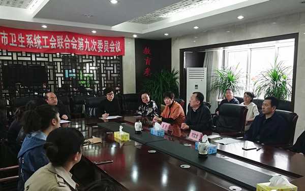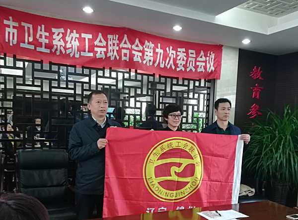 4月17日下午,锦州市卫生系统工会联合会第九次委员大会在锦州市总工会三楼会议室召开。市总工会副主席刘文全、市卫健委副主任蔡欣同志以及卫生系统工会联合会成员单位的工会主席参加了会议?;嵋橐圆患敲绞剑【俨诵乱唤旃せ崃匣嵛被?,锦州市口腔医院工会主席商英楠同志当选为轮值主席。