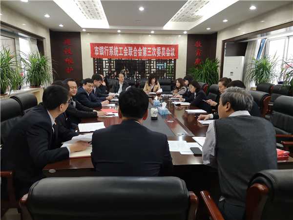 4月24日上午,锦州市银行系统工会联合会第三届委员会在锦州市总工会三楼会议室召开。市总工会副主席刘文全、中国人民银行锦州市中心支行党委委员、工会主席高凤伟以及银行系统工会联合会14家成员单位的工会主席参加了会议?;嶂幸圆患敲绞?,选举产生了银行系统工会联合会第三届委员会,中国银行股份有限公司锦州分行工会主席马东同志当选为轮值主席,中国人民银行锦州市中心支行工会主席高凤伟同志当选为常务副主席。