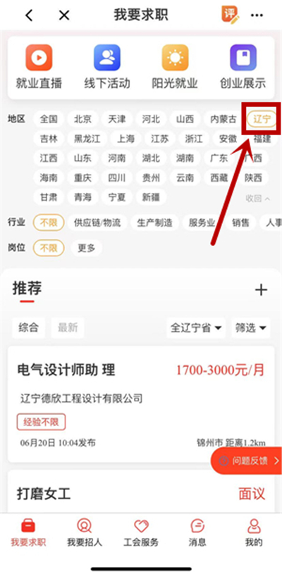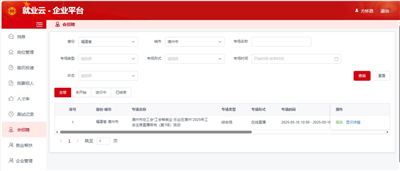企业若想参加工会组织的招聘活动,点击“会招聘”栏目,即可查看工会所有线下招聘会、在线直播招聘会情况。
