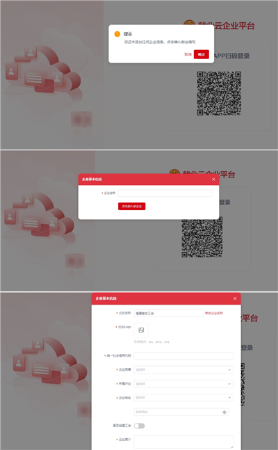 若扫码后提示“未添加任何企业信息”,点击“确认”按步骤填写信息完成认证。