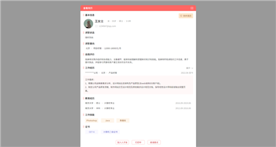 点击简历中的“打招呼”按钮,即可与该求职者建立在线消息沟通;点击“邀请面试”按钮,可邀请求职者面试。