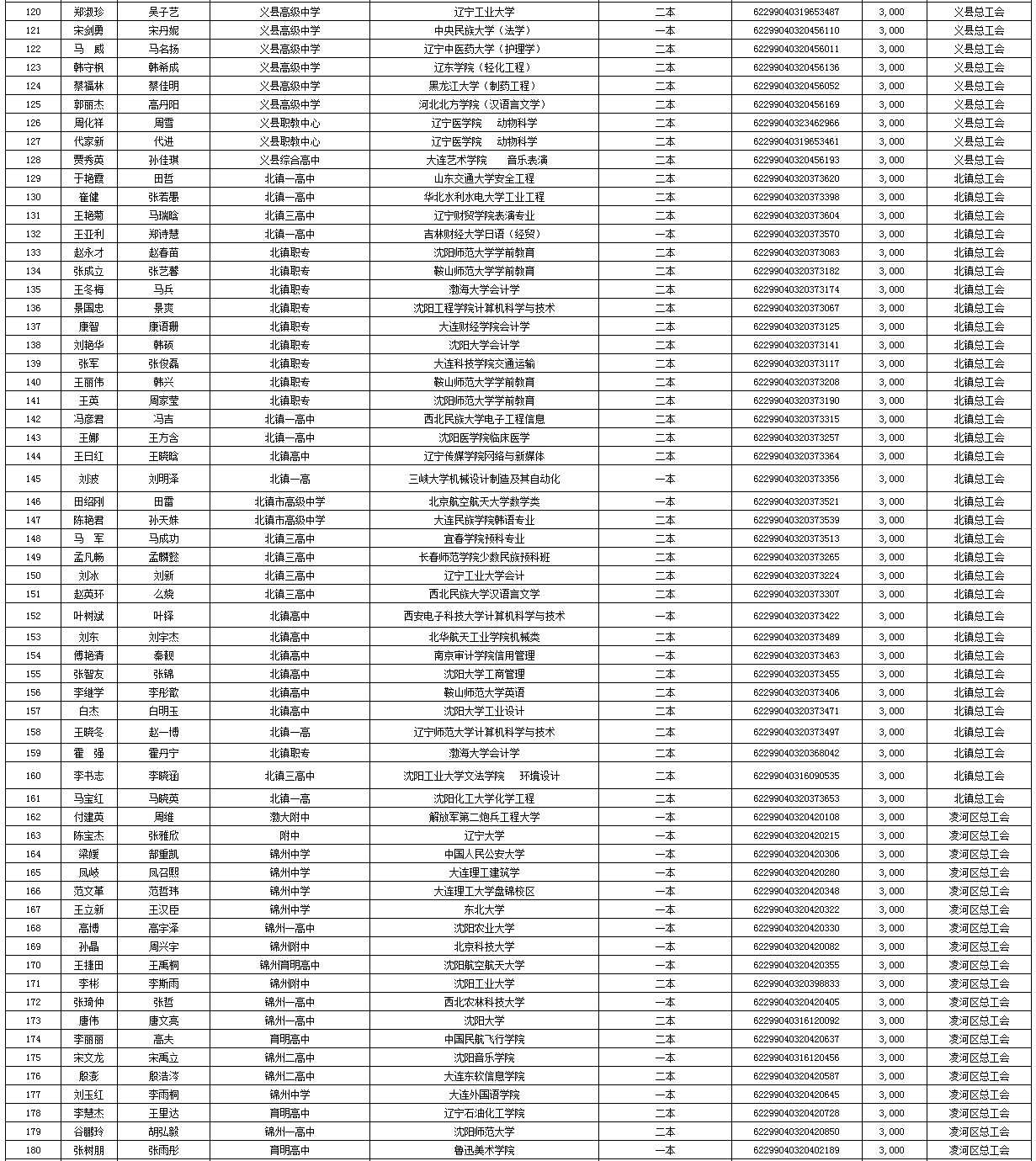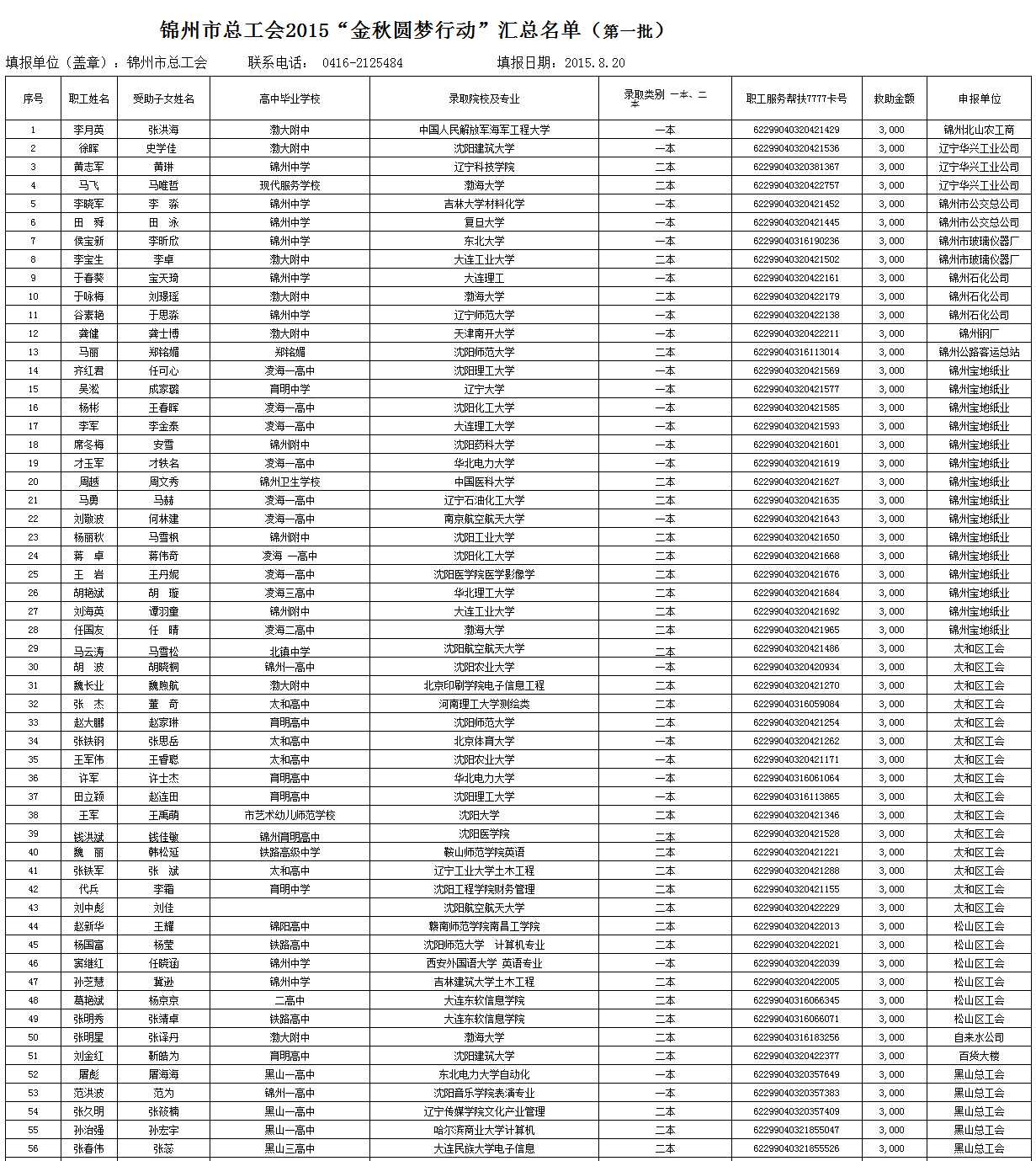 锦州市总工会2015“金秋圆梦行动”汇总名单(第二批)