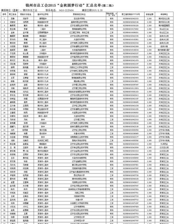 锦州市总工会2015“金秋圆梦行动”汇总名单(第二批)
