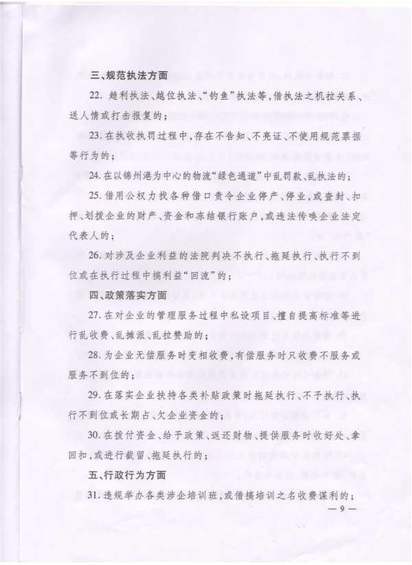 附:《锦州市经济发展环境集中整治活动实施方案》中提出的五个方面五十个问题。