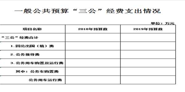 2.“三公”经费:指一般公共预算安排的因公出国(境)费、公务用车购置及运行费和公务接待费。其中,因公出国(境)费反应单位公务出国(境)的住宿费、旅费、伙食补助费、杂费、培训费等支出;公务用车购置及运行费反映单位公务用车购置费及租用费、燃料费、维修费、过路过桥费、保险费、安全奖励费用等支出;公务接待费反映单位按规定开支的各类公务接待(含外宾接待)支出。