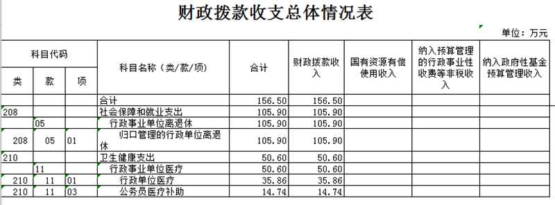 2019年预算收入156.50万元,较上年增加12.73万元,增加8.85%,主要原因:补发2018年离休护理费。