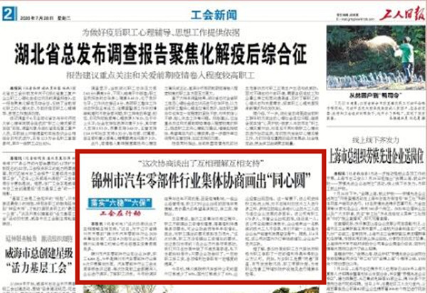 “这次协商谈出了互相理解互相支持。”近日,对于辽宁省锦州市开展的“锦州市汽车零部件行业2020年集体协商”,已经4次担任企业方代表的锦州长泽精工机械公司总经理王俊青感慨良多。