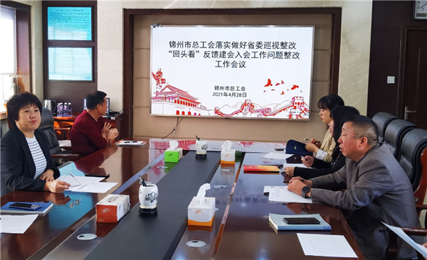 4月28日,锦州市总工会召开党组扩大会议暨锦州市总工会落实做好省委巡视整改“回头看”反馈建会入会工作问题整改工作会议。市总党组书记、分管日常工作的副主席刘春荣主持会议,市总党组成员、各部部长参加会议。