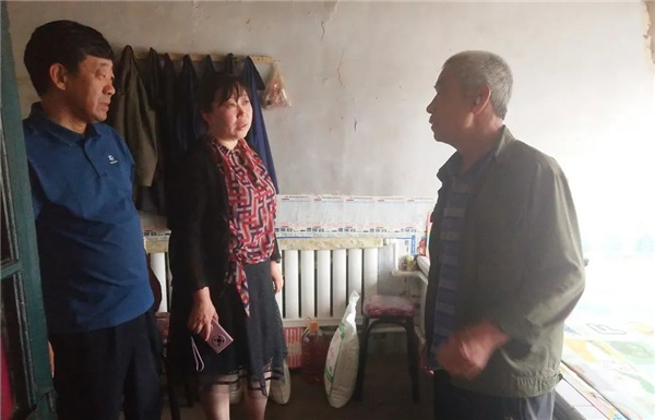 随后,崔英带领机关第二支部党员代表走进凌海市石山镇驿马方村杨?;先思抑??!靶恍荒忝怯掷纯次遥忝翘昧?,我给你们鞠个躬吧!”当老人得知锦州市总工会的党员干部又要来看望自己时,早早的在家门口等候,一见面就打开了话匣子,“上次你们给我买的棉衣我很喜欢,我从来没穿过这么好的棉衣……我家的房子是共产党给修的,我们俩有低保,女儿工作了……”老人虽然从25岁就患有类风湿、糖尿病,现在手脚已严重变形,老伴患有气管炎、肺气肿、冠心病,两人均没有劳动能力,常年靠吃药维持基本生活,但从始至终她的脸上都洋溢着幸福的笑容,每一句话语都能感受到她对党的感恩之情。崔英嘱咐两位老人注意身体,要继续积极乐观的面对生活,相信随着医疗水平的进步,两位老人的病情会得到进一步的治疗。