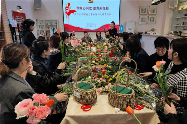 为庆?!叭恕惫矢九诘牡嚼?,满足党员、干部在新时代对文化生活的需求,引领和动员机关及所属事业单位党员、干部、职工在实现“全面振兴新突破”中贡献力量,3月7日,市总工会在友缘俱乐部为机关及所属事业单位全体女干部开展提升女干部能力素养培训之插花培训。