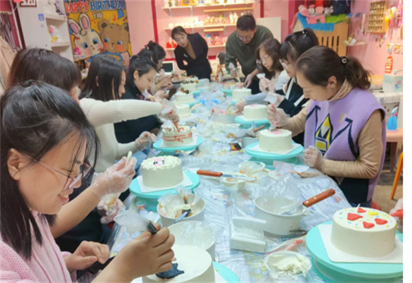 3月7日下午,机关41名女干部参加蛋糕DIY制作活动?;疃殖?,烘焙老师为大家详细讲解了蛋糕的制作过程,从选料、工具、技法和造型等方面给大家一一进行示范指导。在烘焙老师的指导下,大家结合自己的审美风格,将各自的蛋糕胚涂奶油、定型、裱花,或悉心彩绘,或点缀水果。一番制作后,在大家的巧手装扮下,一个个漂亮又富有创意的蛋糕作品纷纷亮相?;疃殖∶致排ㄅǖ哪逃拖闫牖渡τ?,气氛十分温馨。此次“兰心‘会’聚巾帼志 共酿芳华春日甜”喜迎三八节蛋糕DIY活动,是市总工会机关干部素养提升工程的一个载体,同时也是市总工会“会”聚巾帼“工”力量品牌的一个延展。它不仅搭建了一个增进交流的平台,营造了团结、奋进、健康向上的“和谐之家”的氛围,也凝聚了奋勇争先的巾帼力量。通过此次活动,不仅引导工会系统广大女职工砥砺奋进、担当作为,同时也提倡关爱自我,提升内核力量,在锦州全面振兴新突破攻坚任务中彰显巾帼风采。