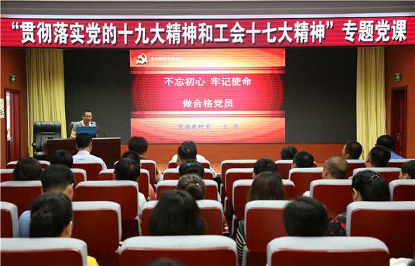 王伟老师从党的十九大报告主题切入,围绕“不忘初心、牢记使命”这一主线,全面深入的讲解了什么是共产党员的初心、为什么守初心和怎样践行共产党员的初心。讲课内容丰富具体,带领与会人员重温我党苦难与辉煌的奋斗历史,激发了干部职工爱党爱国的热情。3位劳模围绕“我和我的祖国 劳动筑梦”主题讲述了他们如何从一名普通劳动者砥砺成金的过程,故事感人而生动,典型朴实而高尚,让与会者近距离与模范接触,近距离感受身边典型的光芒与芬芳。