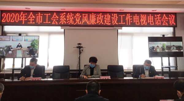 2020年3月4日,市总工会召开“2020年全市工会系统党风廉政建设暨市总工会机关党的建设工作电视电话会议”。市总工会设主会场,各县(市)区设分会场。市总工会党组成员,部分县(市)区工会主席、市直机关工会主席、机关中层以上干部、文化宫班子成员在主会场参加会议,各县(市)区工会班子成员及工会干部在分会场参加会议。