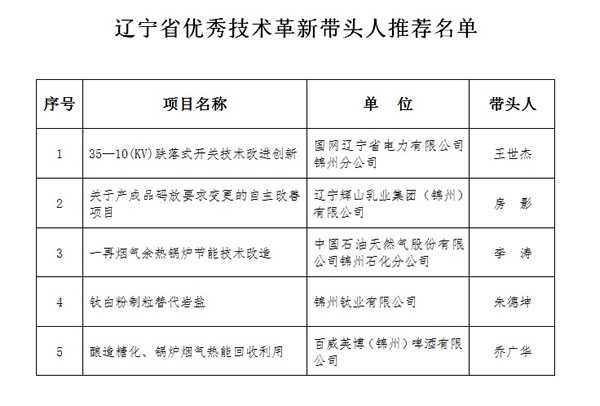 现将辽宁省优秀技术革新带头人推荐名单予以公示,如对公示名单有异议,请于2015年12月14日17点前以信函、电话、来访等方式向锦州市总工会反映。反映问题要客观公正、实事求是,信函、电话应署真实单位、姓名。