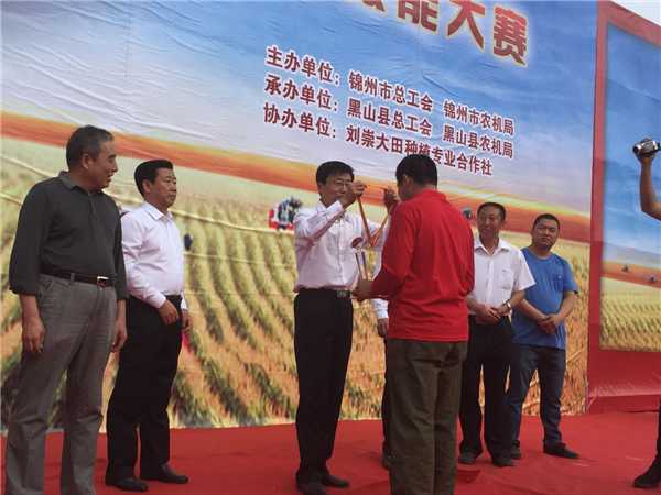 大赛历时4个小时,经过7个品牌17台收割机和17名参赛选手的激烈角逐,最终义县丰收合作社郭中伟以优异的成绩取得了第一名,吴玉林主席为郭中伟颁发了“锦州市五一劳动奖章”荣誉证书和5000元奖金以资鼓励。
