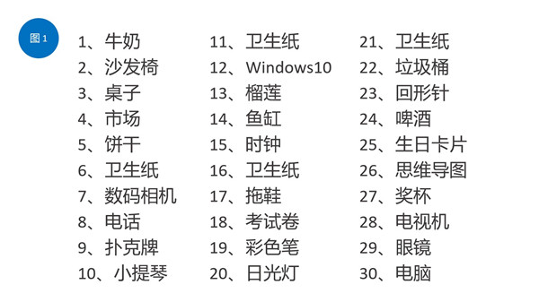 你能在三分钟内按顺序记住这30个词吗?困难很大,但哪些词容易记住呢?