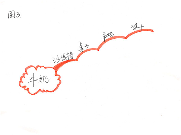 说到一个,就可以想到下一个,甚至是它的上一个。这就要发挥我们强大的想象能力,并让画面感帮助我们来记忆。比如大家可以想象这样一个画面:一大桶的牛奶洒到了沙发椅上,有人可能会问为什么是一大桶而不是一袋,因为越夸张的东西越容易记忆,接下来,这个沙发椅重重地砸到了桌子上,一大堆的桌子被运到了市场,市场里铺满了饼干。如果大家一直在跟着我的思路走,现在就可以闭上眼睛,看看能不能把这五个词说出来。答案是肯定的。