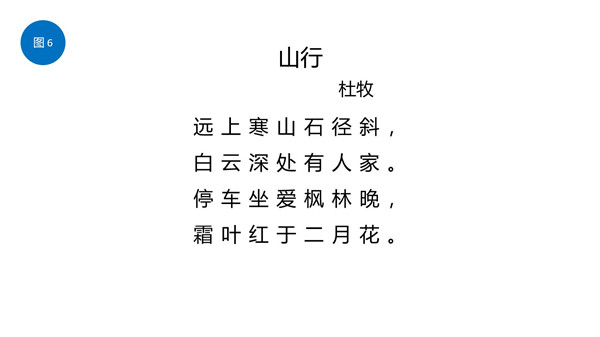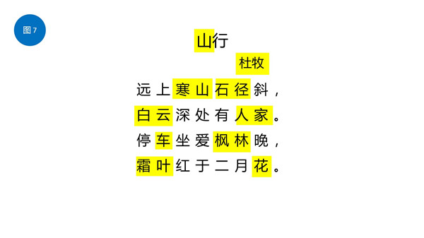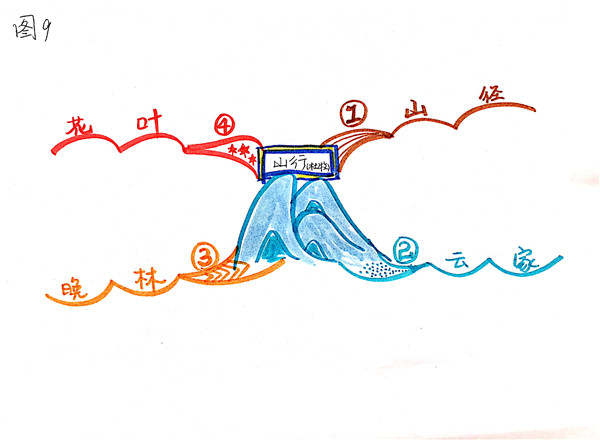 3、色彩。思维导图不同的分支用不同的颜色,比如山行这首诗的导图,我们可以把白云深处有人家这条分支涂上蓝色,因为蓝色会让我们想起蓝天白云,有利于我们记忆。