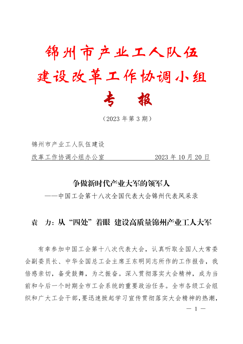 锦州市产业工人队伍建设改革工作协调小组专报(2023第3期)