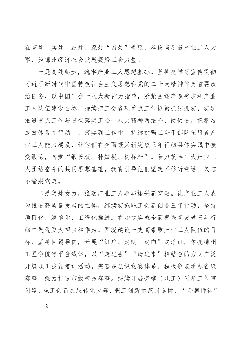 锦州市产业工人队伍建设改革工作协调小组专报(2023第2期)